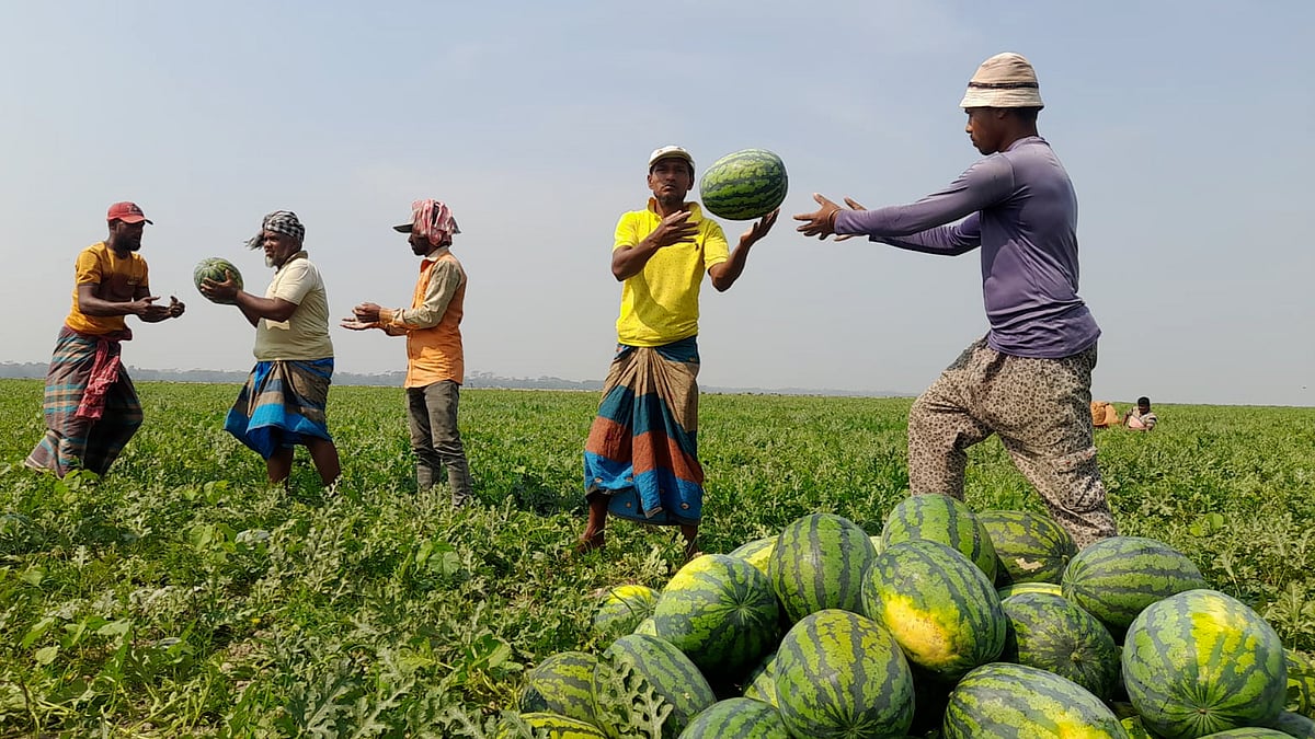 <p>পটুয়াখালীর বাউফল উপজেলার নদীবেষ্টিত চন্দ্রদ্বীপ ইউনিয়নে তরমুজভর্তি একটি ট্রলার ছিনিয়ে নেয় দুর্বৃত্তরা। পরে তিন লাখ টাকা চাঁদার দাবিতে ওই কৃষক ও তাঁর ছেলেকে মারধর করা হয়। বিস্তারিত দেখুন ভিডিওতে....</p>