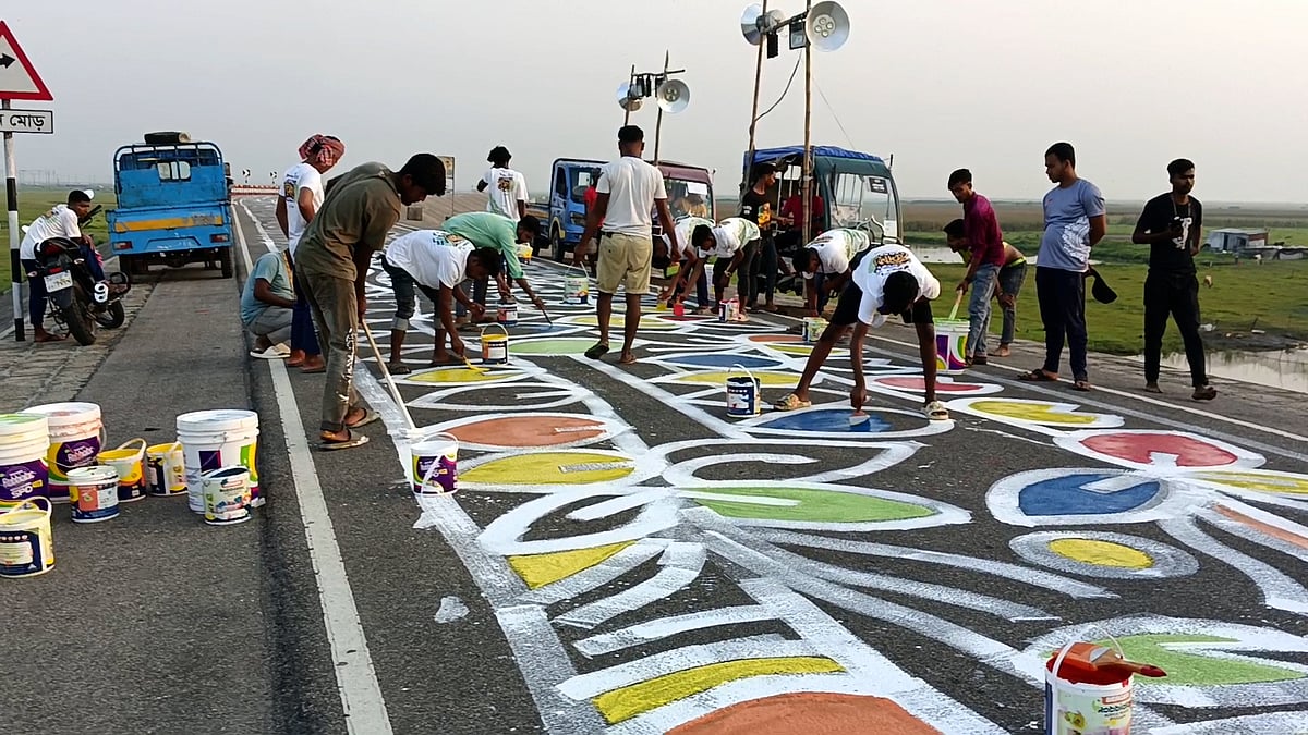 <p>গিনেস বুকে ঠাঁই পেতে কিশোরগঞ্জের ১৪ কিলোমিটার ‘অলওয়েদার’ সড়কে আঁকা হলো আলপনা। শুক্রবার থেকে রোববার পর্যন্ত চলে এ কর্মযজ্ঞ। বিস্তারিত দেখুন ভিডিওতে</p>