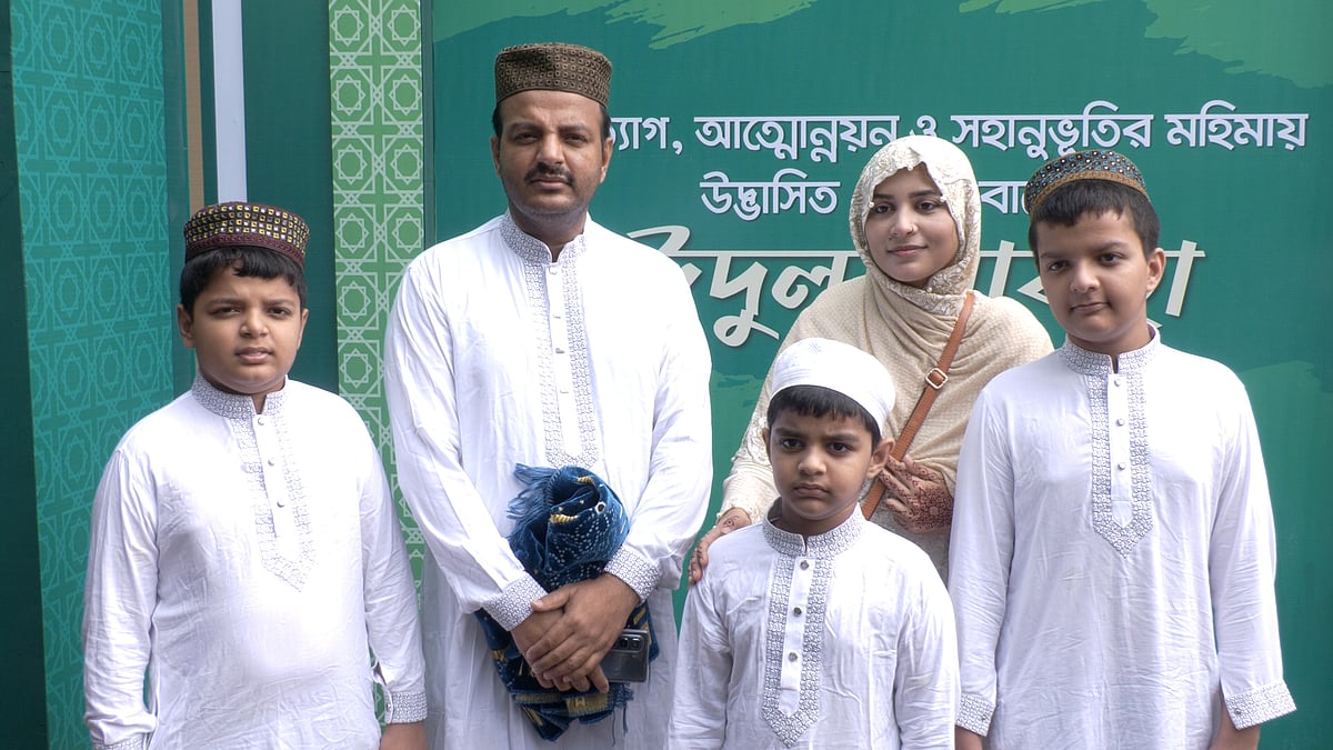 <p>ঢাকায় পবিত্র ঈদুল আজহার প্রধান জামাতে অংশ নিতে একটি পরিবারের সবাই এসেছিলেন। বিস্তারিত ভিডিও প্রতিবেদনে।</p>