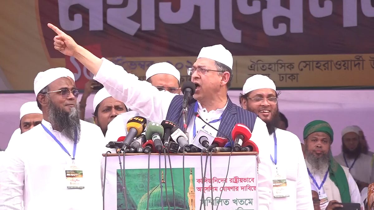 বিএনপি ক্ষমতায় গেলে সংবিধানে ‘মহান আল্লাহর ওপর পূর্ণ আস্থা ও বিশ্বাস’ পুনর্বহাল করা হবে বলে জানিয়েছেন বিএনপির স্থায়ী কমিটির সদস্য সালাহউদ্দিন আহমদ। ১৫ নভেম্বর শনিবার দুপুরে রাজধানীর ঐতিহাসিক সোহরাওয়ার্দী উদ্যানে অনুষ্ঠিত ‘আন্তর্জাতিক খতমে নবুওয়ত মহাসম্মেলনে’ যোগ দিয়ে এ কথা বলেন তিনি। বিস্তারিত ভিডিওতে...