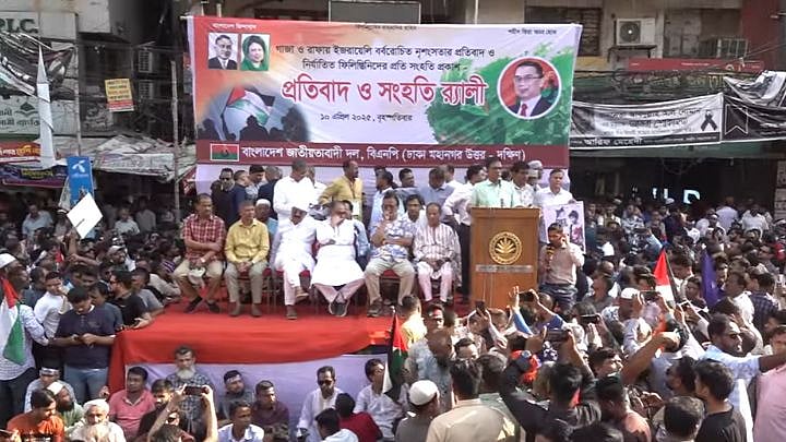 ফিলিস্তিনিদের প্রতি সংহতি প্রকাশ করে বিএনপির র্যালি