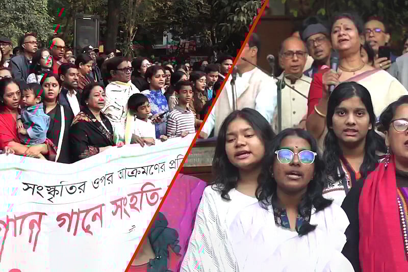 ছায়ানট ভবনে হামলার প্রতিবাদে ‘গানে গানে সংহতি সমাবেশ’ শিরোনামে আজ মঙ্গলবার কর্মসূচির আয়োজন করে অন্যতম সাংস্কৃতিক সংগঠন ছায়ানট। একই সঙ্গে তারা উদীচী শিল্পীগোষ্ঠী ও বাউলদের ওপর আক্রমণকে আবহমান বাংলা সংস্কৃতি ও মুক্তচিন্তার ওপর আঘাত বলে উল্লেখ করেন। বিস্তারিত দেখুন ভিডিও প্রতিবেদনে...