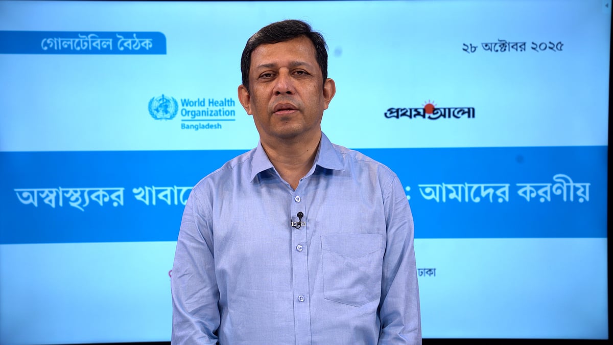 মঙ্গলবার (১১ নভেম্বর) বিশ্ব স্বাস্থ্য সংস্থার (ডব্লিউএইচও) সহায়তায় প্রথম আলো আয়োজন করে ‘অস্বাস্থ্যকর খাবারের পুষ্টি ও স্বাস্থ্যঝুঁকি: আমাদের করণীয়’ শীর্ষক গোলটেবিল বৈঠক। দেশে অপুষ্টি পরিস্থিতি, খাদ্যাভ্যাস, বিধিবিধান—এসব নিয়ে কথা বলেন বাংলাদেশ মেডিকেল ইউনিভার্সিটির সহযোগী অধ্যাপক ডা. রোমেন রায়হান।
