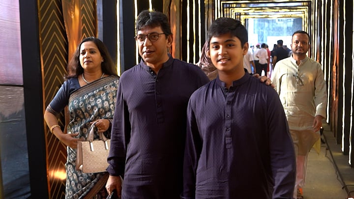 ছেলেকে নিয়ে এক রকম পোশাকে লাল গালিচায় চঞ্চল