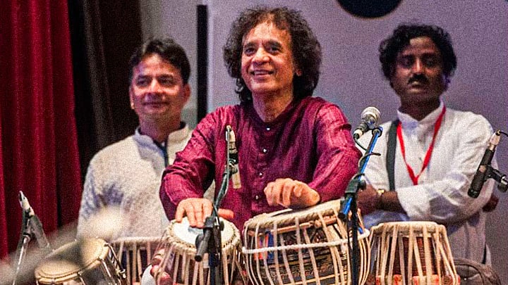 <p>ওস্তাদ জাকির হোসেন তবলা স্পর্শ করলেই সৃষ্টি হতো জাদুময় সুর। তাঁর তবলায় কী না বাজত! বৃষ্টির শব্দ, ঘোড়ার খুরের শব্দ, রেলগাড়ির হুইসেল, নানা প্রাণীর বুলি—আরও কত কী!</p>