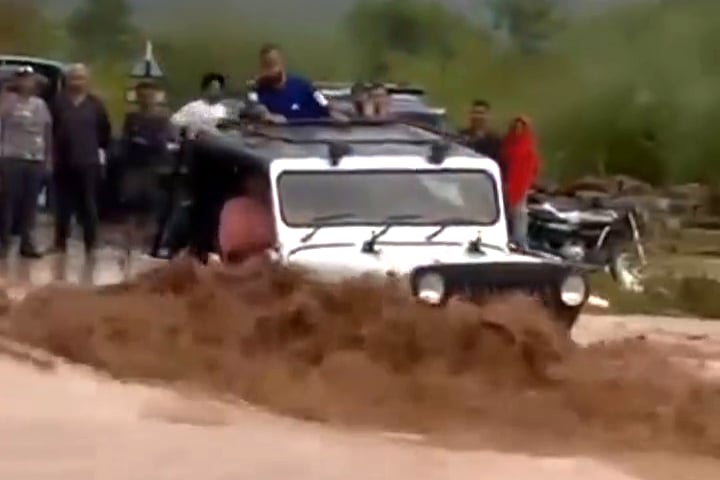 বন্যার পানিতে নামল বেপরোয়া গাড়ি, উল্টে গেল প্রচণ্ড স্রোতে
