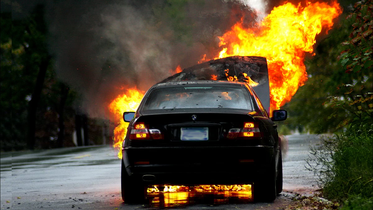 জ্বলন্ত গাড়ি থেকে যেভাবে নারীকে উদ্ধার করলো পুলিশ