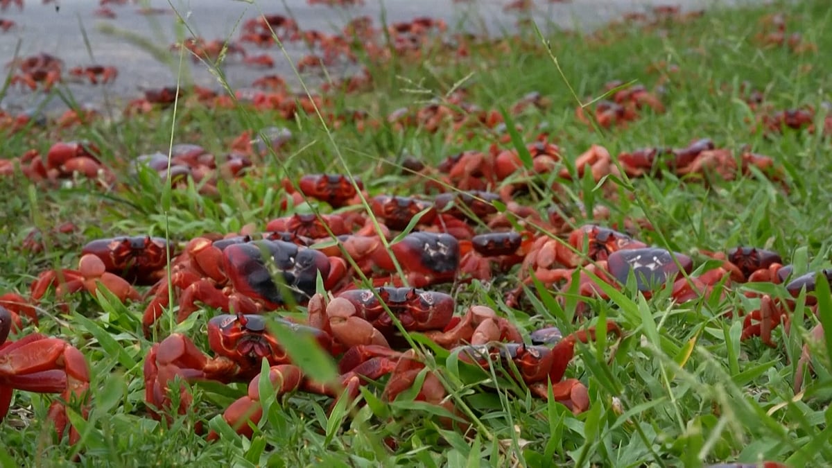 <p>লাখ লাখ লাল কাঁকড়া ছুটে যাচ্ছে সমুদ্রের দিকে। পুরো রাস্তা রঙিণ হয়ে উঠেছে তাদের চলাচলে। অস্ট্রেলিয়ার উপকূলের ক্রিসমাস দ্বীপে ঘটা এই অসাধারণ দৃশ্য দেখুন ভিডিও প্রতিবেদনে...</p>