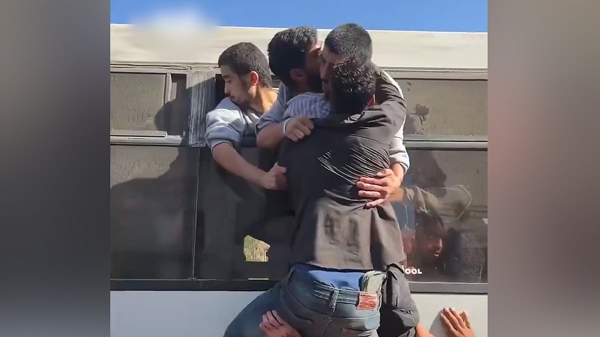 গাজায় শান্তিচুক্তির অংশ হিসেবে ফিলিস্তিনি বন্দীদের মুক্তি দিচ্ছে ইসরায়েল। দীর্ঘদিন দেশটির কারাগারে বন্দী থাকার পর, পরিবারের কাছে ফিরতে পেরে আবেগে আপ্লুত হন তাঁরা। এ রকম একটি আবেগঘন মুহূর্তের দৃশ্য ক্যামেরাবন্দী হয়েছে। যেখানে দেখা যাচ্ছে, এক ফিলিস্তিনি বন্দী চলমান বাসের জানালা দিয়ে জড়িয়ে ধরছেন তাঁর স্বজনকে। বিস্তারিত ভিডিও প্রতিবেদনে—