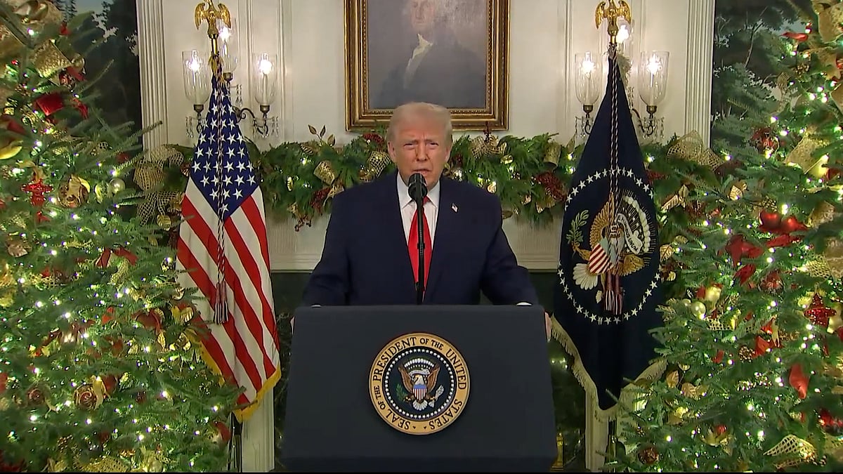 ১৮ ডিসেম্বর বুধবার সন্ধ্যায় হোয়াইট হাউস থেকে জাতির উদ্দেশে ভাষণ দেন মার্কিন প্রেসিডেন্ট ডোনাল্ড ট্রাম্প। ১৮ মিনিটের বক্তব্যে তিনি যুক্তি তুলে ধরেন, অর্থনীতি উন্নতির পথে আছে, আর যে সমস্যা রয়েছে, তার দায় ট্রাম্প প্রশাসনের নয়। বিস্তারিত ভিডিও প্রতিবেদনে—