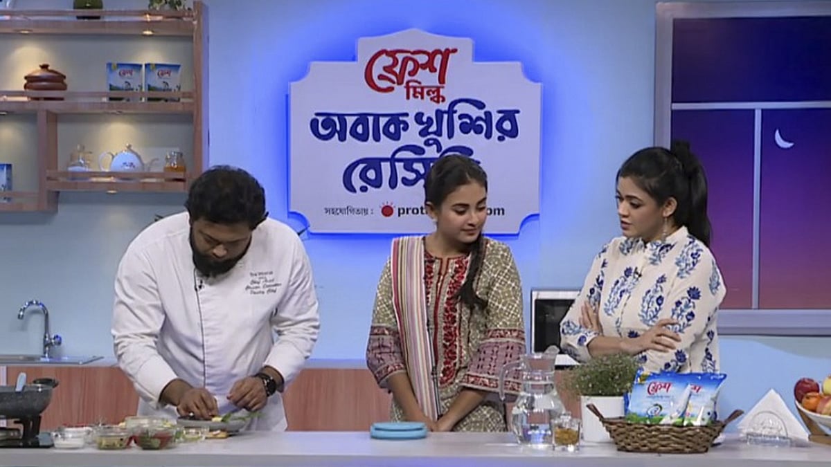 ‘ফ্রেশ মিল্ক অবাক খুশির রেসিপি’তে অভিনয়শিল্পী তানজিম সাইয়ারা তটিনীর জন্য কোন রেসিপি বানালেন শেফ মোহাম্মদ আসাদুজ্জামান নূর?