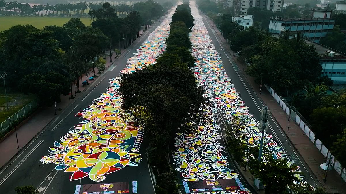 রাজধানীর মানিক মিয়া অ্যাভিনিউতে ১৩ এপ্রিল রাত পৌনে ১১ টায় শুরু করে আলপনা আঁকা হয় ১৪ এপ্রিল ভোর ৬টা পর্যন্ত। পয়লা বৈশাখ উপলক্ষে এশিয়াটিক এক্সপেরিয়েনশিয়াল মার্কেটিং লিমিটেড, বার্জার পেইন্টস বাংলাদেশ লিমিটেড ও বাংলালিংক ডিজিটাল কমিউনিকেশনস লিমিটেডের যৌথ উদ্যোগে আয়োজিত হয়েছে আলপনা উৎসব ‘আলপনায় বৈশাখ ১৪৩১।’ বিস্তারিত দেখুন ভিডিওতে