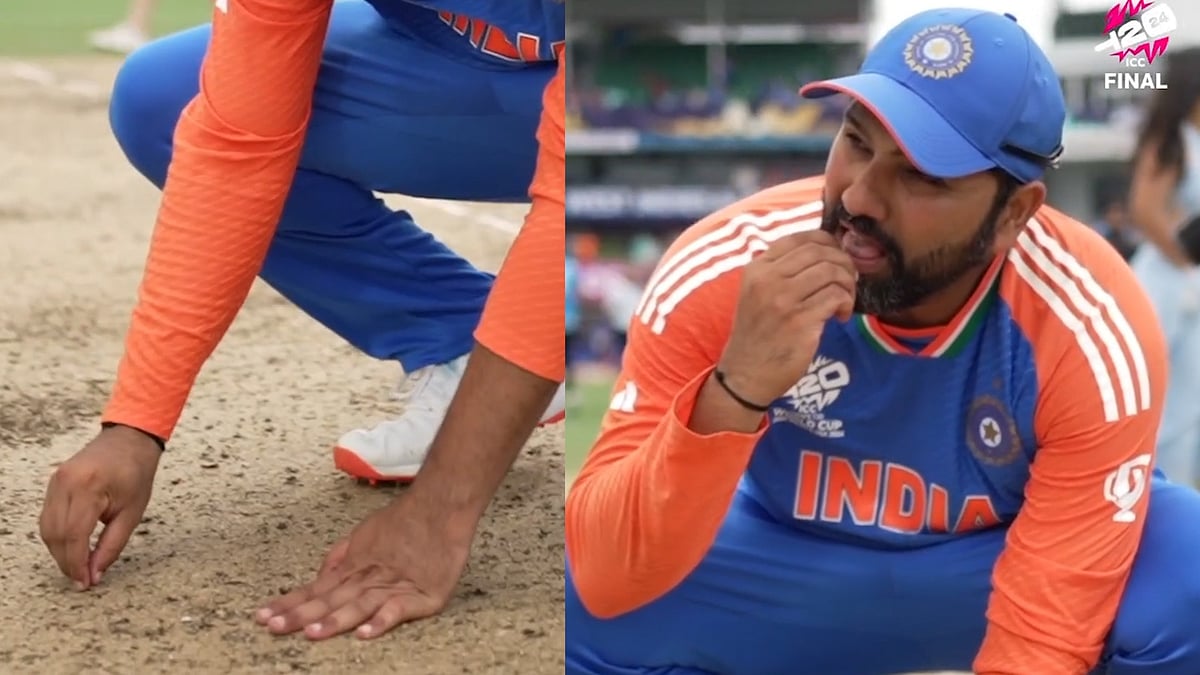 শিরোপা জয়ের পর কী করবেন, সেটা বুঝতে না পেরেই হয়তো ভারতের অধিনায়ক সতীর্থদের ফেলে চলে গেলেন মাঠের ঠিক মাঝখানে, বার্বাডোজের পিচের ওপর। এরপর পিচটায় পরম মমতায় একটু হাত বোলালেন। আঙুল দিয়ে খুঁচিয়ে তুলে নিলেন পিচের ছোট্ট একটা টুকরা...