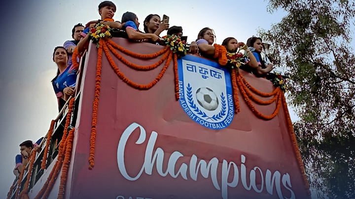 নেপাল থেকে আরেকবার দক্ষিণ এশীয় শ্রেষ্ঠত্বের মুকুট জিতে দেশে ফিরেছে বাংলাদেশ নারী ফুটবল দল। আজ দুপুর আড়াইটায় ঢাকার শাহজালাল আন্তর্জাতিক বিমানবন্দরে অবতরণ করে সাবিনাদের বহনকারী বিমান। নারী ফুটবল দলের এই বিজয় নিয়ে কী ভাবছেন সাধারণ মানুষ? বিস্তারিত দেখুন ভিডিওতে