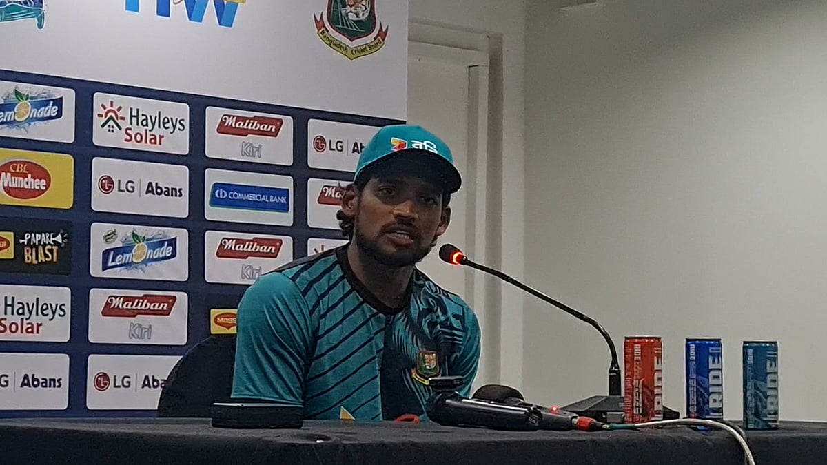 <p>গল টেস্টে ড্র করেছে বাংলাদেশ। ম্যান অব দ্য ম্যাচ হলেন নাজুমল হোসেন। ম্যাচ শেষে সংবাদ সম্মেলনে কথা বলেন তিনি। বিস্তারিত ভিডিওতে…</p>