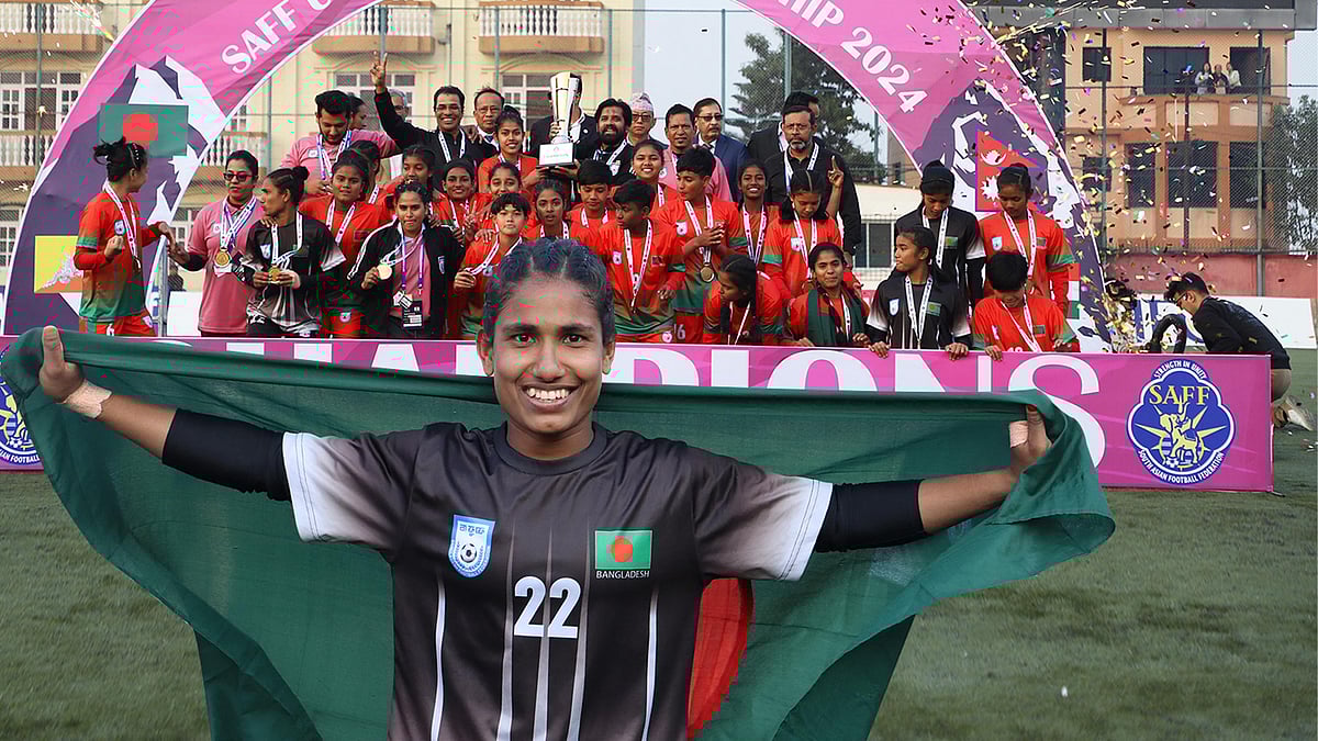 সাফ অনূর্ধ্ব-১৬ মেয়েদের ফুটবলে টাইব্রেকারে গড়ানো ফাইনালে বাংলাদেশের গোলকিপার ইয়ারজান ভারতের তিনটি পেনাল্টি ঠেকিয়ে দেশকে এনে দিয়েছে অনূর্ধ্ব-১৬ সাফ ফুটবলের শিরোপা। এর আগে অনূর্ধ্ব-১৫ শিরোপা জিতলেও এই প্রথমবারের মতো সাফ অনূর্ধ্ব-১৬ টুর্নামেন্টের শিরোপা জিতেছে বাংলাদেশ