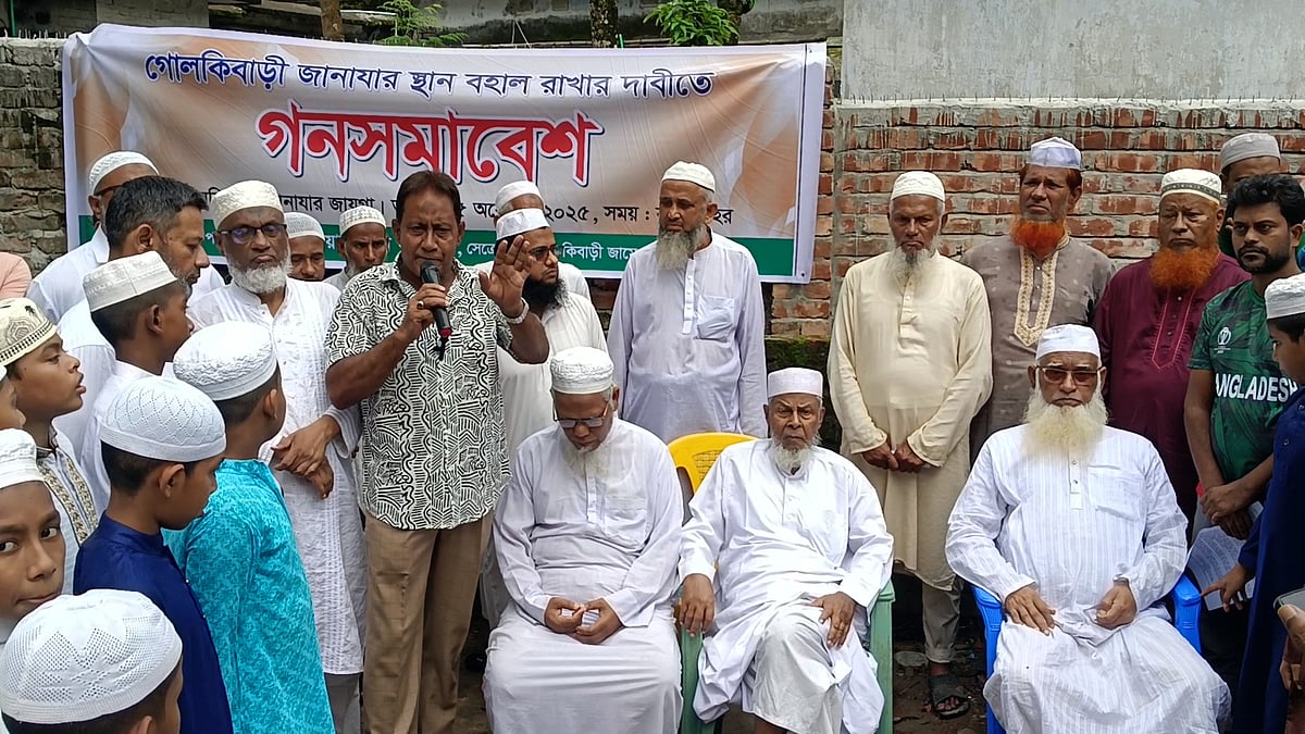 ময়মনসিংহ শহরের গোলকীবাড়ী এলাকার একটি স্থানে এলাকাবাসী জানাজা পড়েন প্রায় দীর্ঘ ছয় দশক ধরে। কিন্তু সেখানেই সিটি করপোরেশন ওয়ার্ড কাউন্সিলরের স্থায়ী কার্যালয় স্থাপনের উদ্যোগ নেওয়া হয়েছে। এ খবরে অসন্তোষ শুরু হয়েছে স্থানীয় লোকজনের মধ্যে। ৫ অক্টোবর বেলা ২টায় জানাজার স্থান বহাল রাখার দাবিতে সমাবেশও করেছেন তাঁরা। বিস্তারিত ভিডিও প্রতিবেদনে—