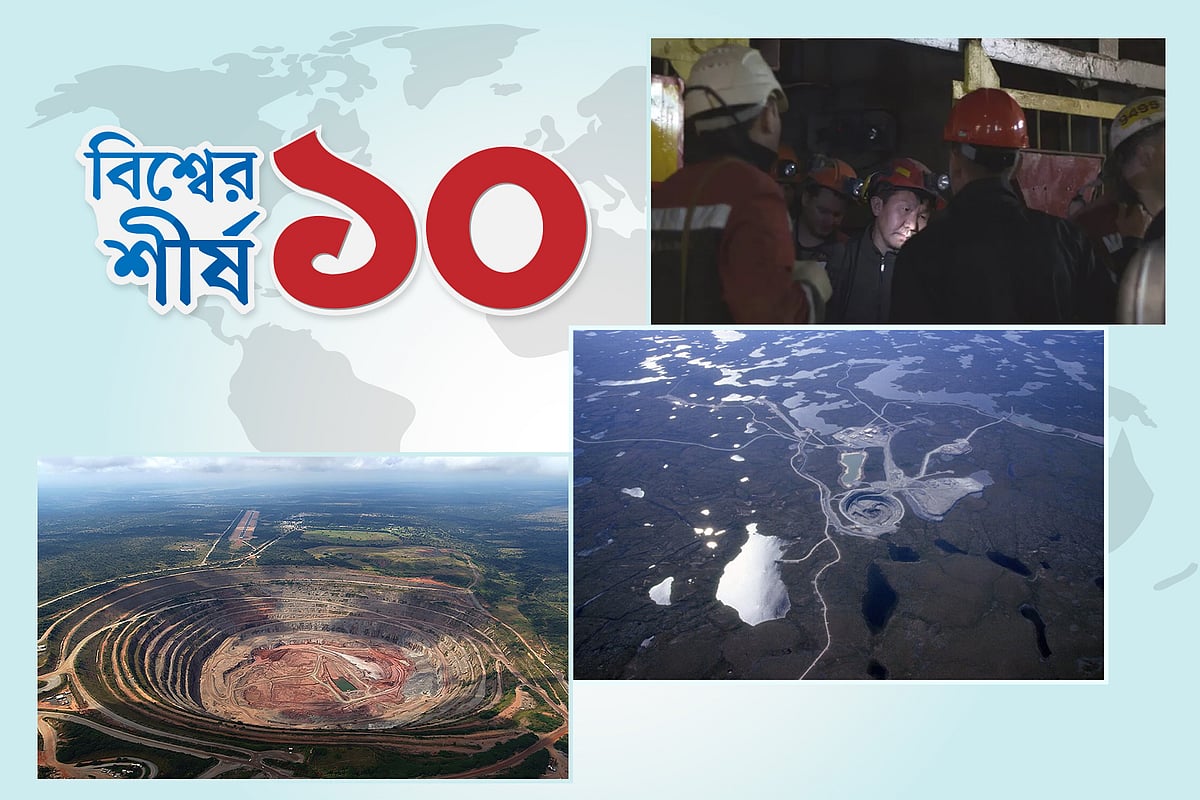বিশ্বের সবচেয়ে বড় ১০টি হীরার খনির ৫টিরই অবস্থান রাশিয়ায়। ওয়ার্ল্ড অ্যাটলাসের ওই প্রতিবেদনের ভিত্তিতে বিশ্বের সবচেয়ে বড় ১০টি হীরার খনি সম্পর্কে জেনে নেওয়া যাক।
