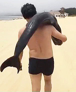 প্রত্যক্ষদর্শীরা বলেছেন, গুয়াংডংয়ের হেইলিং দ্বীপের উপকূলে পড়ে ছিল মৃতপ্রায় ডলফিনটি। এমন সময় এক পর্যটক ডলফিনটি ধরে তা কাঁধে তুলে নেন। কিছু দূর যাওয়ার পর ডলফিনটিসহ গাড়িতে উঠে পালিয়ে যান।