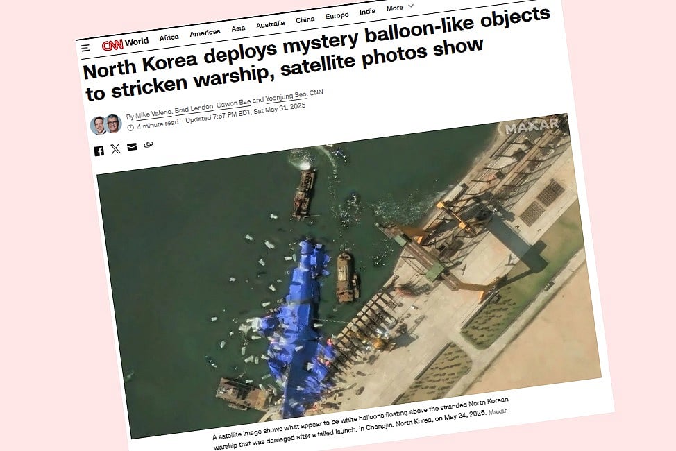 উত্তর কোরিয়া দেশটির পাঁচ হাজার টন ওজনের একটি বিধ্বস্ত যুদ্ধজাহাজের পাশে বেলুনের মতো দেখতে কিছু বস্তু স্থাপন করেছে। গত সপ্তাহে উদ্বোধনের সময় যুদ্ধজাহাজটি এক পাশে হেলে পড়ে আংশিকভাবে ডুবে যায়।