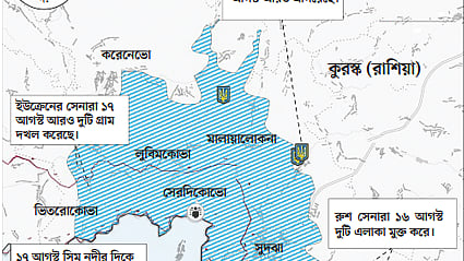 এর মধ্যে ৬ আগস্ট থেকে রাশিয়ার ভেতরে কুরস্ক অঞ্চলে হামলা শুরু করে ইউক্রেন। এরই মধ্যে রাশিয়ার ১ হাজার ১৫০ বর্গকিলোমিটার এলাকা ও ৮২টি সেনা স্থাপনা নিয়ন্ত্রণে নেওয়ার দাবি করেছে তারা।