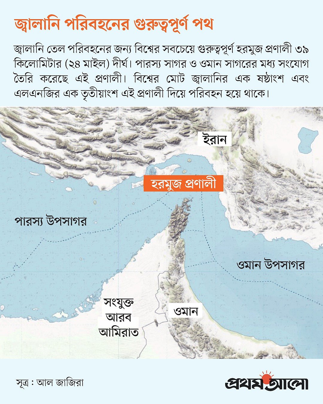 পারস্য উপসাগরের একমাত্র সামুদ্রিক প্রবেশপথ হরমুজ প্রণালি। ইরান এর আগে একাধিকবার এ পথ বন্ধ করে দেওয়ার হুমকি দিয়েছে। যুক্তরাষ্ট্রের জ্বালানিবিষয়ক দপ্তরের তথ্যমতে, বৈশ্বিক তেল সরবরাহের প্রায় ২০ শতাংশ হরমুজ প্রণালির মধ্য দিয়ে যায়। সংস্থাটি একে ‘বিশ্বের সবচেয়ে গুরুত্বপূর্ণ জ্বালানি পরিবহনের পথ’ হিসেবে উল্লেখ করেছে।