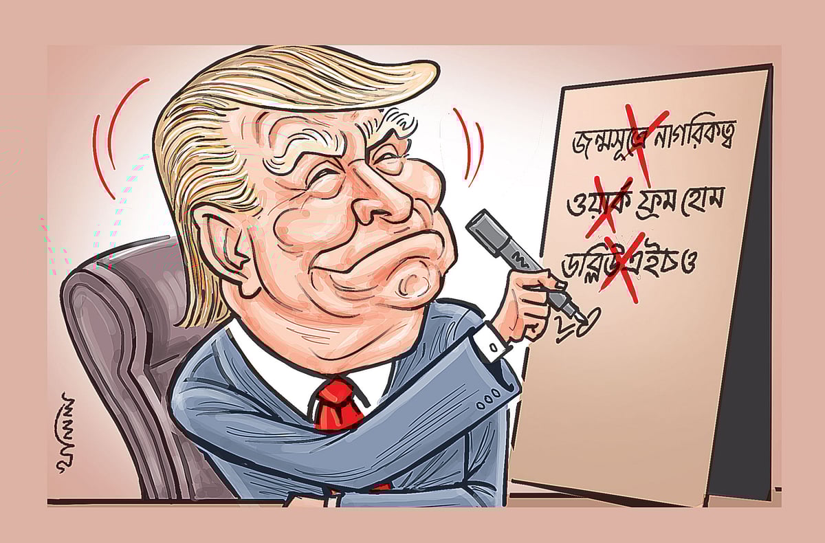 সংবিধানের তোয়াক্কা না করে জন্মসূত্রে নাগরিকত্বের একটি বিধানও বাতিল করেছেন ট্রাম্প। এতে এখন থেকে ৩০ দিন পর যুক্তরাষ্ট্রে জন্ম নেওয়া অবৈধ অভিবাসীদের সন্তানেরা দেশটির নাগরিকত্ব পাবে না। ট্রাম্পের এই আদেশ মার্কিন সংবিধানের চতুর্দশ সংশোধনের বিরুদ্ধে যায়। ১৮৯৮ সালের ওই সংশোধনীতে বলা হয়, মার্কিন ভূখণ্ডে জন্মগ্রহণ করা সবাই দেশটির নাগরিকত্ব পাবে।