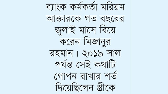 দ্বিতীয় বিয়ে গোপন করতে নিজের ক্ষমতার অপব্যবহার করে স্ত্রী মরিয়ম আক্তারকে গ্রেপ্তার করানোর অভিযোগ উঠেছে ঢাকা মহানগর পুলিশের অতিরিক্ত পুলিশ কমিশনার মিজানুর রহমানের বিরুদ্ধে। তিন সপ্তাহ কারাভোগের পর সপ্তাহখানেক আগে মরিয়ম জামিনে মুক্তি পেয়েছেন। নতুন করে তাঁকে মামলায় জড়ানোর চেষ্টা চলছে বলে জানিয়েছে মরিয়মের পরিবার।