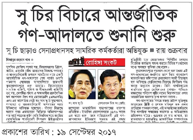 এবারে বলি রোমভিত্তিক পারমানেন্ট পিপলস ট্রাইব্যুনালের (পিপিটি) পেছনের কথা। আন্তর্জাতিক গণ–আদালতের এই ধারণাটি নোবেলজয়ী ব্রিটিশ দার্শনিক বার্ট্রান্ড রাসেলের। ১৯৬৬ সালে এর প্রথম অধিবেশনের উদ্যোক্তা ছিলেন ফরাসি দার্শনিক জাঁ পল সার্ত্রে। ভিয়েতনামে যুক্তরাষ্ট্রের সামরিক হস্তক্ষেপ এবং তার পরররাষ্ট্রনীতির সুলুক সন্ধানই ছিল তাদের ওই যাত্রার লক্ষ্য। রাসেল-সার্ত্রের ওই উদ্যোগকে যুক্তরাষ্ট্র যেভাবে গুরুত্ব দেয়নি, সেভাবে মিয়ানমারের ছদ্মবেশী সামরিক সরকারও কিন্তু পিপিটিকে পাত্তা দেয়নি। ৭০ পৃষ্ঠার পূর্ণাঙ্গ রায়, যাতে সূচি ও তাঁর সামরিক পরিষদের নেতৃত্বাধীন মিয়ানমারকে জেনোসাইডের দায়ে দোষী সাব্যস্ত করা হয়েছে, তার আইনি নয়, রয়েছে নৈতিক ভিত্তি। মিয়ানমারের আগে দেশে দেশে মানবাধিকার বিষয়ে ৪৩টি ট্রাইব্যুনাল বসেছে।
