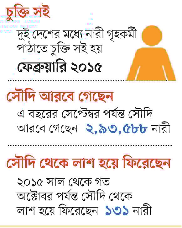 সৌদিতে নারী গৃহকর্মী পাঠানোর পর খোঁজ নেয় না কেউ