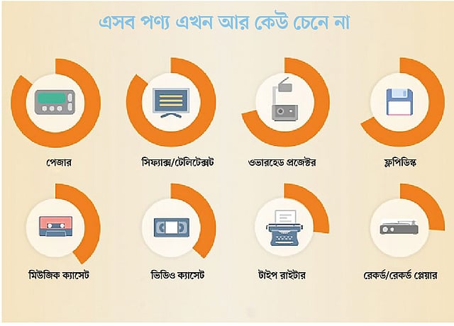 কে জানত আমাদের ছোটবেলার প্রিয় স্মৃতির সঙ্গে জড়িত কোডাক কিংবা ফুজি ফটোফিল্ম দিয়ে কেউ একদিন আর ছবি তুলবে না? একসময়ের দেড় লাখ কর্মীর প্রতিষ্ঠান কোডাক এখন দেউলিয়া। যে ডিজিটাল ক্যামেরার উত্থানের জন্য ফিল্ম ক্যামেরার এই দুর্গতি, তার ভবিষ্যৎই এখন অনিশ্চিত মোবাইল ক্যামেরার জন্য। ফ্লপিডিস্ক এখন জাদুঘরে। পেনড্রাইভের ব্যবহারও এখন খুবই কম। জাতিসংঘের হিসাবে, বিশ্ব যত লোক স্যানিটারি সুবিধা পায়, তার বেশি এখন মোবাইল ফোন আছে মানুষের হাতে। আজকের প্রযুক্তি কদিন পরেই সেকেলে হয়ে যাচ্ছে। অনেক প্রথাগত ব্যবসাই আমূল পাল্টে যাচ্ছে দ্রুতগতিতে। কী হবে তাহলে বছর কুড়ি পরে?