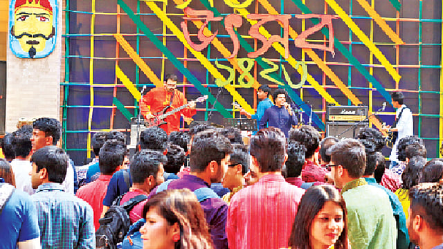 >ক্যাম্পাসের ক্যানটিনে, সিঁড়িতে কিংবা ছোটখাটো অনুষ্ঠানগুলোতে গান করতে করতেই গড়ে ওঠে কিছু ব্যান্ড দল। মুখে মুখে ছড়িয়ে যায় তাদের নাম। বিশ্ববিদ্যালয়ের গণ্ডি পেরিয়ে কোনো কোনো ব্যান্ডের খ্যাতি ছড়িয়ে পড়ে সারা দেশে। শিক্ষার্থীরা তখনো গর্ব করে বলেন ‘আমাদের’ ক্যাম্পাসের ব্যান্ড