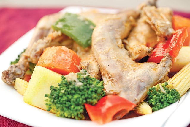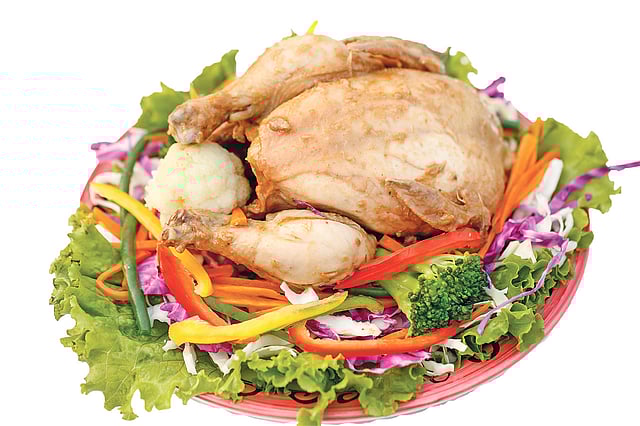 উপকরণ: মাঝারি আকারের দেশি মুরগি ১টি, আদাবাটা ১ চা–চামচ, রসুনবাটা ১ চা–চামচ, পেঁয়াজবাটা ১ টেবিল চামচ, গোলমরিচের গুঁড়া ১ চা–চামচ, তেল ১ টেবিল চামচ, টকদই ৪ টেবিল চামচ, সবজি ২ কাপ (গাজর, বেবিকর্ন, চাইনিজ ক্যাবেজ, ফুলকপি, ব্রকলি, স্কোয়াস, ক্যাপসিকাম ইত্যাদি), কাঁচা মরিচ ৪টি, দারুচিনি ২ টুকরা, এলাচ ২টি, লবঙ্গ ৪টি, তেজপাতা ১টি।