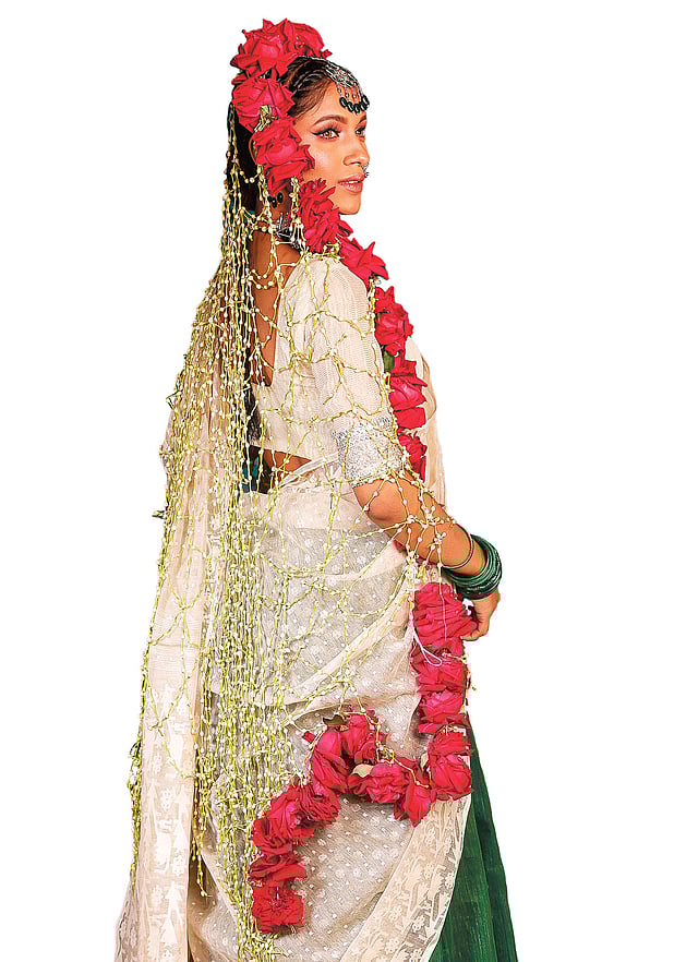 নিজের বিয়ের সময় হুট করে এমন একটা ভাবনা চলে এসেছিল সংগীতশিল্পী কোনালের মাথায়। বলছিলেন, ‘আমার কাছে গায়েহলুদ মানে তাজা ফুল। বছর তিনেক আগে যখন আমার গায়েহলুদের জন্য ফুলের গয়না ফরমাশ করতে যাই, তখন হঠাৎ করেই মাথায় এল, ওড়নাটা ফুলের হলে তো বেশ হবে।’ এরপর নিজের ইচ্ছা কারিগরকে বুঝিয়ে দিতে বেগ পেতে হয়নি কোনালের। খুব খুশি ছিলেন ফুল দিয়ে গাঁথা সেই ওড়না পেয়ে।