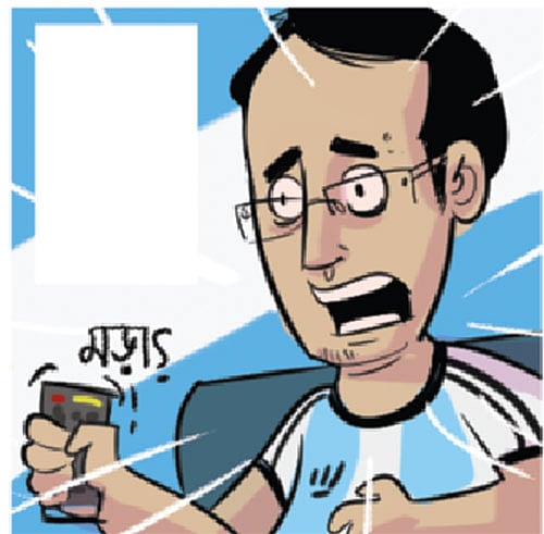 মিষ্টির ছোট ভাই যা বলল, তাতে রীতিমতো ঝামেলায় পড়ে গেলাম। বাসার সবাই নাকি আর্জেন্টিনা সাপোর্ট করে। সুতরাং মিষ্টিও আর্জেন্টিনা। ফুটবল সম্পর্কে তেমন একটা না জানলেও এতটুকু জানি যে, আর্জেন্টিনা-ব্রাজিল—এই দুই দলের সমর্থকদের সম্পর্ক সাপে-নেউলে। কী করি, কী করি ভাবতে ভাবতে আমার তিন রাত ঘুম হলো না। তারপর একটা সিদ্ধান্ত নিয়েই নিলাম। আর্জেন্টিনার বিশাল এক পতাকা ছাদে লাগিয়ে দিলাম। পুরো এলাকাজুড়ে জানিয়ে দিলাম, আজ থেকে আমি আর্জেন্টিনার ‘ডাই হার্ট’ ফ্যান। ব্রাজিল–সমর্থকদের সঙ্গে তর্ক করতে শুরু করলাম ধুমসে। মেসি যে পৃথিবীর উদীয়মান সেরা খেলোয়াড়, তা বোঝানোর জন্য গলার স্বর যতটা উঁচু করার প্রয়োজন ছিল তার থেকে বেশি উঁচু করলাম, কিনে ফেললাম জার্সি।