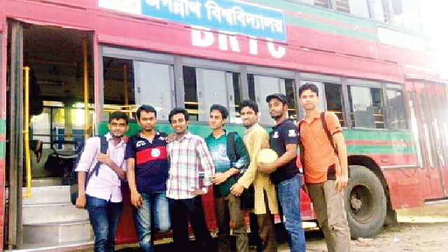 ক্যাম্পাস খোলা থাকলে মুন্সিগঞ্জের নিমতলা থেকে আমি আড়িয়ালের যাত্রী হই। বিশ্ববিদ্যালয়ের এই বাসে যাওয়া-আসা করতে করতে ‘ক্লাসমেটদের’ পাশাপাশি অনেক ‘বাসমেটও’ জুটে গেছে। খুব সকালে ক্যাম্পাস বাসে ওঠার পর দেখা হয় ঘুমকাতুরে বন্ধু একরামের সঙ্গে। বাস ছুটে চলে, বাসের ঝাঁকুনির সঙ্গে আমরাও ঘুম ঘুম চোখে এক ছন্দে দুলতে থাকি। কেউ কেউ আছে ব্যতিক্রম। তারা বই পড়ে, পাশের বন্ধুর সঙ্গে গল্প জুড়ে দেয়। একসময় সবাই একসঙ্গে পৌঁছে যাই প্রাণের জগন্নাথ বিশ্ববিদ্যালয় ক্যাম্পাসে।