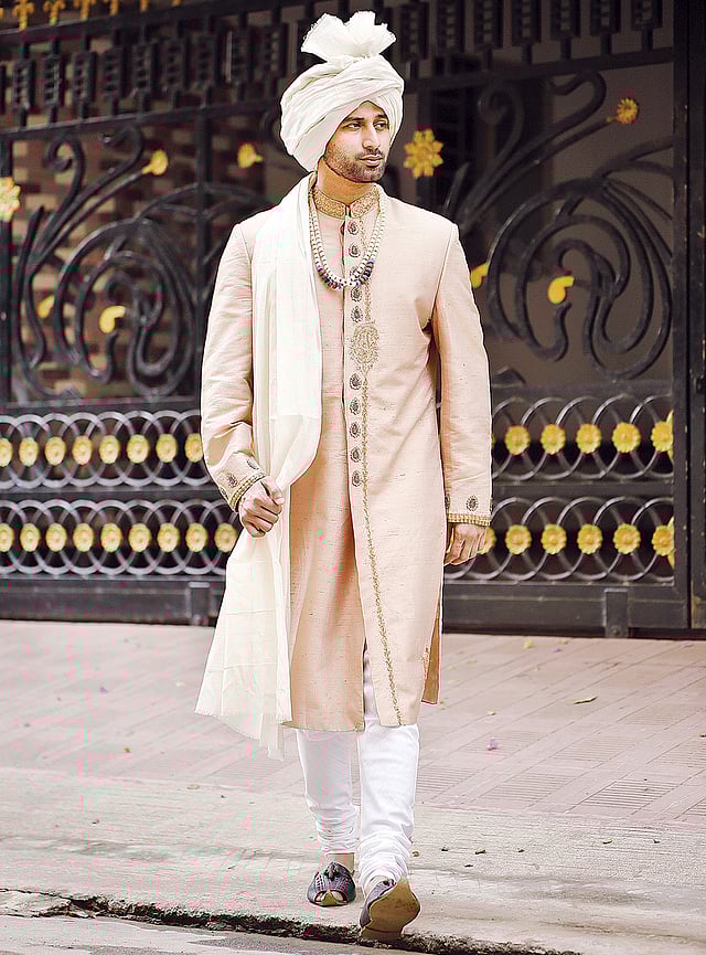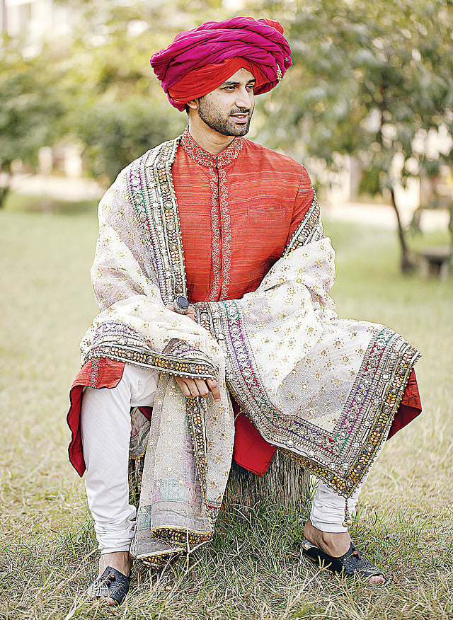 ফ্যাশন ডিজাইনার এমদাদ হক নকশার এই প্রতিবেদনের ফটোশুটের জন্য পাগড়ি বাঁধতে বাঁধতে জানালেন, হাতে বাঁধা পাগড়িতে বরকে বেশি রাজসিক লাগে। সোনালি, তামাটে, লালের মতো উজ্জ্বল রং কিংবা ঘিয়ে রঙের পাগড়িতে বর বেশি জমকালো হয়ে ওঠেন। পাগড়ি বাঁধতে কম–বেশি সাত গজ কাপড় ব্যবহার করলে বাঁধন ভালো হয়।