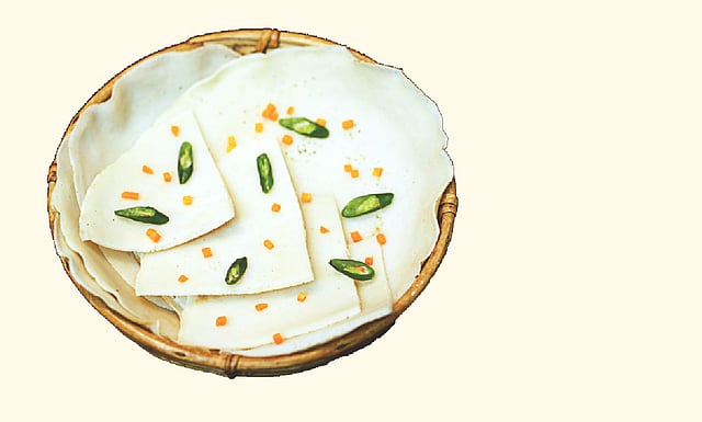 চালের গুঁড়া মিহি চালনি দিয়ে চেলে নিতে হবে। এবার ডিম, লবণ ও পানি দিয়ে পাতলা ব্যাটার তৈরি করতে হবে। ৫ মিনিট ঢেকে রাখুন। এবার ২ টেবিল চামচ তেল মেশান।