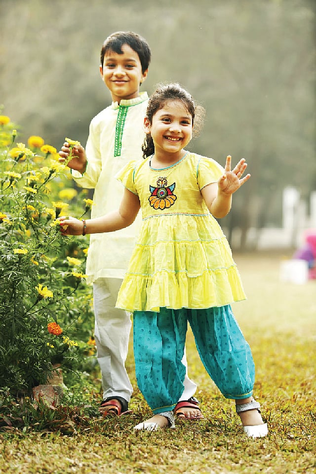 বাজারে আনে। এবারও তার ব্যতিক্রম নয়। চেনা রঙে নতুন নকশায় শিশুদের বসন্তের পোশাকের সংগ্রহ বেশ বড়সড়।