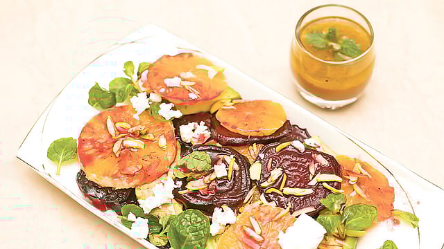 রোস্টেড বিটরুট অ্যাভোকাডো-অরেঞ্জ সালাদ