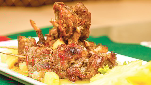 উপকরণ: খাসির মাংস ১ কেজি, আদাবাটা ১ টেবিল চামচ, অয়েস্টার সস ১ টেবিল চামচ, রসুনবাটা ১ চা-চামচ, সয়াসস ১ টেবিল চামচ, মাস্টারজেস্ট ১ টেবিল চামচ, গোলমরিচের গুঁড়া সিকি চা–চামচ, বারবিকিউ সস ২ টেবিল চামচ, লবণ পরিমাণমতো, সরিষার তেল সিকি কাপ, টুথপিক প্রয়োজনমতো, বাটার ২৫ গ্রাম ও মধু ১ টেবিল চামচ।