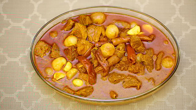 প্রণালি: মাংস ধুয়ে সিরকায় ভিজিয়ে নিন। তাতে তাড়াতাড়ি গলে আর টকভাব হয়। টুকরা করে ধুয়ে আচার ও কিছু কাঁচা মরিচ বাদে সব উপকরণ মেখে নিতে হবে। তেল গরম করে পাঁচফোড়নের ফোড়ন দিতে হবে। তাতে মাখানো মাংস ও পরিমাণমতো পানি দিয়ে অল্প আঁচে রান্না করতে হবে। মাংস সেদ্ধ হয়ে পানি শুকিয়ে গেলে কাঁচা মরিচ দিয়ে কিছুক্ষণ চুলায় রেখে দিন। নামানোর আগে লম্বা লম্বা করে, চিকন চিকন করে আদা, আস্ত রসুন, আস্ত পেঁয়াজ দিয়ে কিছুক্ষণ হালকা আঁচে দিয়ে রেখে দিন চুলার ওপরে। এতে পেঁয়াজগুলো গলে যায়, আদা–রসুনের সুগন্ধ ছড়িয়ে পড়বে। পরিবেশনের সময় বড় বড় লাল মরিচ দিতে পারেন।