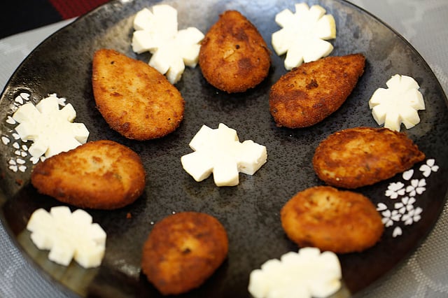প্রণালি: আলু ভর্তা করে নিয়ে, আলুর ভেতরে সেদ্ধ ডিম দিয়ে দিন। এবার পানপাতার আকার করে ডিমের সাদা অংশের মধ্যে ভিজিয়ে টোস্ট বিস্কুটের গুঁড়া লাগিয়ে ক্রাম্ব করে ডুবোতেলে ভাজতে হবে। চাইলে ঈদের আগের রাতে ডিপ ফ্রিজেও করে রেখে দিতে পারেন। দেশি পনির ফুলের মতো করে কেটে সাজিয়ে নিতে পারেন।