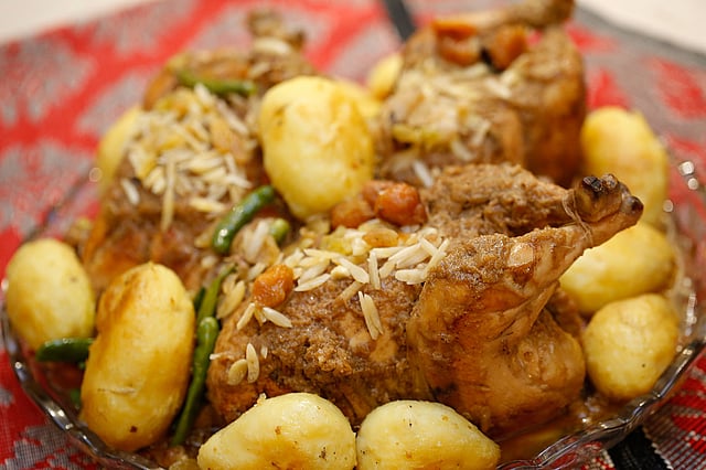 প্রণালি: তিনটি মুরগিকে দই আদা পেঁয়াজ দিয়ে মাখিয়ে রাখুন। মাখানোর পরে ভালো করে লাল করে ভেজে নিন আস্ত মুরগি। ভাজার পরে পেঁয়াজ লাল করে সব রকমের মসলা দেবেন কিন্তু হলুদ দেবেন না। আদা–রসুন–পেঁয়াজবাটা বেশি করে দিয়ে আবার বেশি করে পেঁয়াজের বেরেস্তা দিয়ে মসলার মধ্যে আরেকবার কষিয়ে আস্ত মুরগি আরেকবার ভেজে নিন। আবার মসলার মধ্যে কষিয়ে, কষার পরে অনেকটা পানি দিয়ে চুলার ওপর দিন। আন্দাজমতো পানি দিন, পানি শুকাবে আর মুরগিটা হয়ে যাবে। নামানোর পরে আগে বাদাম বেটে রাখা, কিশমিশ আর আলু বোখারা, বেরেস্তা, বাদাম ওপরে দিন। কেউ চাইলে মুরগির ভেতরে ডিম, আলু ও কিশমিশ দিয়ে স্টাফিং করতে পারেন।