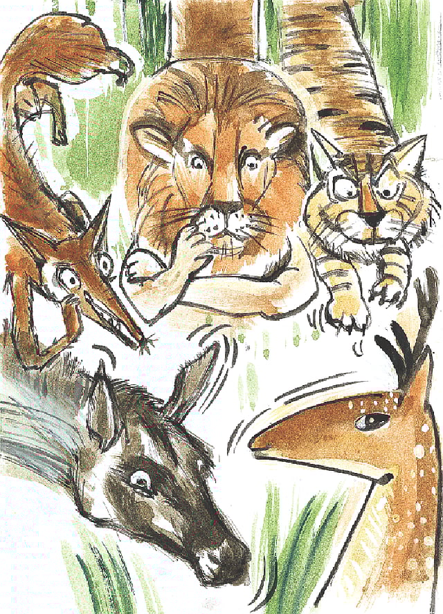গাধা আর হরিণ সিংহের কাছে এল।